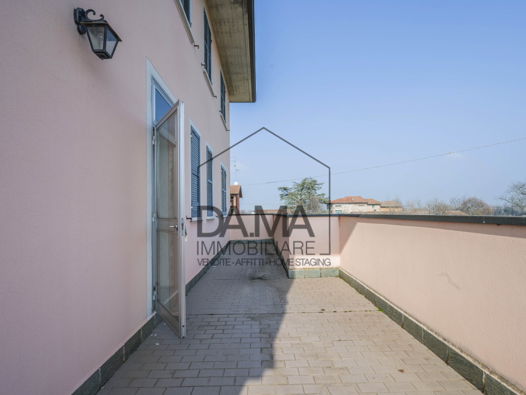 Elemento di assoluto pregio è il terrazzo di circa 20 mq: uno spazio riservato e suggestivo, con una piacevole vista aperta sulla campagna circostante, ideale per momenti di relax o convivialità in un contesto di grande tranquillità.